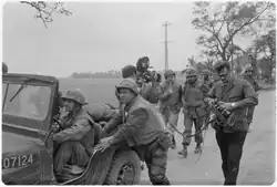 1968: Walter Cronkite (Hintergrund, Mitte mit Mikrophon) berichtet vom Vietnamkrieg