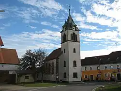 - Die evangelisch-lutherische Christuskirche wurde 1892/93 anstelle des Vorgängerbaus, der dem hl. Alban geweiht war und 1528 von der Reformation erfasst worden war, im neuromanischen Stil erbaut.[26] Sie gilt als Baudenkmal.