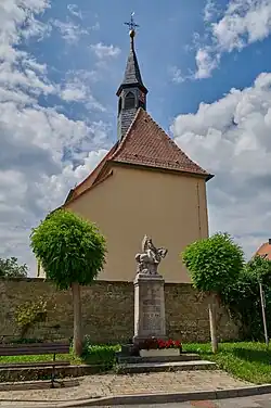 Den Mittelpunkt des Dorfes bildet die katholische Filialkirche St. Nikolaus. Das Gotteshaus entstand im Jahr 1675 und wurde 1867 verändert. Die Kirche präsentiert als kleiner Saalbau mit eingezogenem Chor. Auf der Ostseite wurde ein Dachreiter mit Spitzhelm angebracht. Des Weiteren sind auf der Flur des Dorfes viele Bildstöcke zu finden. Eine Besonderheit stellen zwei spätmittelalterliche Sühnekreuze an der Kreisstraße dar.