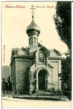 Damit die russische Kolonie in Baden-Baden ihre Gottesdienste nicht mehr in Privaträumen abhalten musste, begannen um 1855 russische Adelige Spenden für die Kirche zu sammeln. 1880 setzte die Großherzogin Maria Maximilianowna (eine geborene Fürstin Romanowski-Leuchtenberg und Enkelin des Zaren Nikolaus I.) diese Bestrebungen fort. Die Stadt schenkte der russischen Gemeinde ein Grundstück und ließ 1881/82 die Kirche nach den Plänen des Sankt Petersburger Architekten Iwan Strom im nordrussischen Stil bauen. Am 28. Oktober 1882 wurde der auf dem Grundriss eines griechischen Kreuzes errichtete dreischiffige Sandsteinbau im Beisein einer Vielzahl geistlicher und weltlicher Würdenträger feierlich eingeweiht.