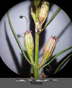 Die Kapselfrucht ist eine eiförmig öffnet sich mit zwei Fruchtklappen.[1]
