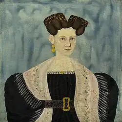 - Frühes 19. Jh.: Portrait of a Woman Holding a Book Das Werk war Teil der Volkskunstsammlung von Elie Nadelmann. Von 1924 bis 1934 wurde Nadelmanns Sammlung im American Folk Art Museum ausgestellt, bevor sie 1937 durch die New-York Historical Society aufgekauft wurde.[10]