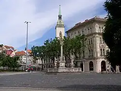 Die späten 1960er und frühen 1970er Jahren markierten einen schweren Eingriff in das Bild des Platzes. Mit dem Bau der neuen Brücke des Slowakischen Nationalaufstandes verschwanden große Teile des Platzes mit Umgebung, darunter das Gebäude der städtischen Brauerei und die Synagoge.[2] Seither bleiben nur noch eine Pestsäule und zwei Stadthäuser am Treffpunkt mit dem Hviezdoslavovo námestie und der Straße Pánska.