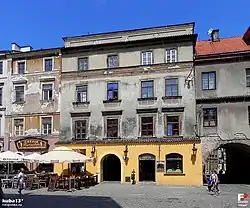 Die Geschichte des Gebäudes lässt sich bis in das 15. Jahrhundert zurückverfolgen. In den Jahren 1617 bis 1631 wurde das Gebäude bis zum zweiten Obergeschoss erweitert und mit einer renaissance Fassade versehen, das Dachgeschoss mit figürlichen Darstellungen. Die renaissance Fassade wurde 1823 in eine klassizistische Fassade geändert. Ebenso wurde das Dachgeschoss entfernt und ein drittes Obergeschoss errichtet. Um das Dach wurde eine Mauer errichtet die zwischen dem Ersten und Zweiten Weltkrieg entfernt wurde. Während der Renovierung 1938 wurde die Fassade abermals umgestaltet. Die Zwischenräume der Fenster wurden mit Sgraffito von J. Wodyński dekoriert. 1954 wurde die Dekoration von der Fassade entfernt und die Mauer auf dem Dachgeschoss wieder rekonstruiert. In diese Zeit fällt auch die Gestaltung des Frieses zwischen dem zweiten und dritten Obergeschoss.