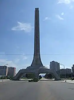 Ein sog. Turm der der Unsterblichkeit markiert den Beginn der Ryomyong-Straße.