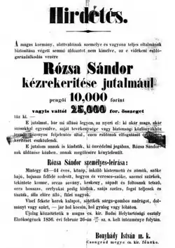 Nach der Niederschlagung der Revolution war Rózsa zur Flucht gezwungen und nahm sein früheres Leben als Räuber wieder auf. Erst 1856 wurde er gefangen genommen, nachdem einer seiner Weggenossen ihn verraten hatte. Er wurde nach dreijährigem Prozess zum Tod, dann aber zu lebenslanger Haft verurteilt und verbrachte neun Jahre in den Gefängnissen von Kufstein, Theresienstadt und Petrovaradin, bis er anlässlich einer Generalamnestie 1868 entlassen wurde.