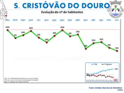 Im Jahr 1849 zählte die Gemeinde São Cristóvão do Douro 70 Haushalte mit 216 Einwohnern.[1] Die Zahl stieg bis auf 404 im Jahr 1864, danach hielt sie sich halbwegs stabil um 400 herum, um seit den 1960ern stetig zu sinken. Zählte man 1960 noch 352 Einwohner, so waren es 2011 nur noch 160. Mit der Gemeindereform 2013 wurde die Gemeinde schließlich aufgelöst und in die neugeschaffene Gemeinde Provesende, Gouvães do Douro e São Cristóvão do Douro eingegliedert.