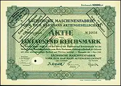 Am 24. März 1870 wurde das Unternehmen als Sächsische Maschinenfabrik zu Chemnitz AG in eine Aktiengesellschaft umgewandelt.[1] Richard Hartmann übernahm den Vorsitz des Verwaltungsrats, den er bis zu seinem Tod 1878 behielt. Die Söhne Richard Hartmanns übernahmen wichtige Funktionen im Unternehmen. 1878 verließ die 1000. Lokomotive die Produktion der Sächsischen Maschinenfabrik, zahlreiche Unternehmenserweiterungen erfolgten in dieser Zeit, um die ständig wachsende weltweite Nachfrage zu erfüllen. 1896 wurde mit dem Bau eines neuen Verwaltungsgebäudes in Chemnitz begonnen, im gleichen Jahr wurde von einem Sohn Richard Hartmanns, Gustav Hartmann, in der damals zu Russland gehörenden Ukraine eine Tochtergesellschaft in Luhansk (russischer Name: Lugansk) gegründet, das heute noch als Lokomotivfabrik Luhansk existiert. Die unternehmenseigenen Betriebe in Lauchhammer leitete zu jener Zeit Josef Hallbauer. Im Jahr 1899 wurde in der im Handelsregister eingetragene Firma des Unternehmens der Zusatz „zu Chemnitz“ durch „vormals Richard Hartmann“ ersetzt.[1]