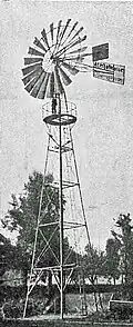 Stahlwindturbine Athlet 1911 (mit festen Rotorblättern und Eklipse-Regelung)[15] |
