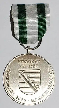 - ↑ Bekanntmachung des Präsidenten des Sächsischen Landtages und des Ministerpräsidenten über die Stiftung des Sächsischen Fluthelfer-Ordens 2002 vom 11. Oktober 2002, Nr. 9 Sächsisches Amtsblatt Nr. 45, Seite 1144