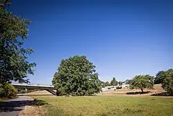 Der Baum steht auf den Elbwiesen an ihrer breitesten Stelle, die dort zur Radeberger Vorstadt im Stadtbezirk Neustadt gehören. Westlich von ihm quert in Nord-Süd-Richtung die 2013 eröffnete Waldschlößchenbrücke die Elbe; der Abstand zwischen Brückengeländer und Kronenrand beträgt etwa 25 Meter. Nördlich des Baums verläuft die Bautzner Straße (Bundesstraße 6) auf dem Hochufer, südlich der an dieser Stelle asphaltierte Körnerweg (Elberadweg).