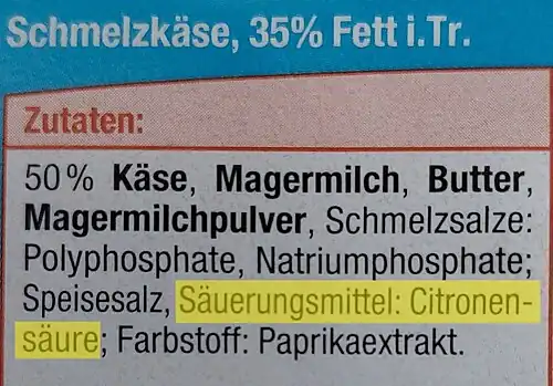 - ↑ a b c d Eintrag zu Säuerungsmittel. In: Lexikon der Lebensmittelzusatzstoffe: Zusatzstoffe im Essen. Frank Massholder, abgerufen am 2. Mai 2022.