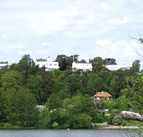Der Bebauungsplan des Architekten Albert Lilienberg (1879–1967) war von verschlungenen, gut an das Terrain angepassten Straßen und Wegen gekennzeichnet. Die vorhandene Vegetation wurde weitgehend erhalten. Nahezu 95 % der Villen stammen von einem einzigen Architekten, Edvin Engström (1890–1971), der sich auch mit dem Entwerfen von Mehrfamilienhäusern einen Namen gemacht und der während seiner aktiven Zeit an die 5.000 Einfamilienhäuser gezeichnet hatte. Trotz seiner umfangreichen Produktion waren seine Bauten technisch und ästhetisch stets gut durchplant.