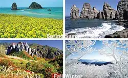 Die mit Abstand größte Insel heißt Jejudo. Sie liegt rund 150 Kilometer südlich der Südwestküste des Festlands, ist 1845,6 Quadratkilometer groß und bildet mit einigen kleinen Inseln die Provinz Jeju-do.