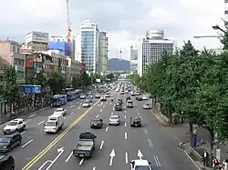 Während der Nachkriegsära wurden die Chinesen diskriminiert, da die Regierung eine ethnisch möglichst homogene Bevölkerung anstrebte. Nach 1945 lebten mehrere zehntausend Chinesen im Land, die nach der Niederlage der Kuomintang im chinesischen Bürgerkrieg eingewandert sind. Die meisten von ihnen waren rechtlich Staatsbürger der Republik China (Taiwan), das auch die chinesischsprachigen Schulen und das Chinatown in Südkorea finanziert. In den 1960er Jahren gab es gesetzliche Regelungen, die die Größe des Besitzes von Ausländern regelte, dies betraf vor allem die Chinesen. Die Staatsbürgerschaft Südkoreas zu erlangen war praktisch unmöglich und ein Großteil kehrte in den 60ern in die verbliebene Republik China auf Taiwan zurück.[30] Da Südkorea neben Japan die Asienkrise im Jahre 1997 am besten überstanden hat, ist eine große Zahl von Arbeitern aus anderen Teilen Asiens (Thailand, Philippinen und Indien) und sogar aus Afrika nach Südkorea eingewandert, um in den großen Fabriken Arbeit zu finden. Viele hiervon befinden sich illegal im Land. Die Anzahl an registrierten Ausländern in Südkorea stieg von etwa 469.000 im Jahr 2004[31] auf 1.752.346 im Jahr 2022.[32] Durch die Beziehungen zu den USA seit der Nachkriegszeit haben sich mittlerweile auch viele US-Amerikaner angesiedelt, vor allem im Seouler Stadtteil Itaewon prägen sie das Stadtbild. Hier befindet sich auch das „UN-Dorf“ nebst vielen Botschaften und ausländischen Unternehmen.
