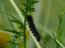 Die Raupen ernähren sich polyphag. Je nach Region bevorzugen sie andere Nahrungspflanzen. Zu diesen zählen insbesondere Rubus-Arten, Schlehdorn (Prunus spinosa), Weißdorne (Crataegus), Eichen (Quercus), Hainbuchen (Carpinus) Birken (Betula), Weiden (Salix), Heidekräuter (Erica), Heidelbeeren (Vaccinium), Spiersträucher (Spiraea), Mädesüß (Filipendula), Blutweideriche (Lythrum), Fingerkräuter (Potentilla), Rosen (Rosa), Besenheide (Calluna) und Sanddorne (Hippophae). Im Norden Griechenlands findet man die Raupen meistens an Mittelmeer-Brombeere (Rubus ulmifolius) und Pyrus amygdaliformis.[1]
