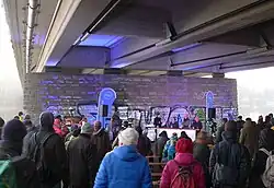 Für den Bau einer Behelfsbrücke vor dem Tunnelbau erfolgten Ende 2022 erste Baumfällungen an den Böschungen des Schnellwegs. Dabei kam es durch die Aktivisten aus dem Besetzercamp zu kleineren Aktionen.[28][29] Etwa 100 Menschen führten eine spontane Demonstration durch,[30] weil angeblich zu viele Bäume gefällt wurden.[31][32] Presseberichten zufolge sicherten 1400 Polizisten, unter anderem aus dem Bundesgebiet, die Arbeiten ab.[33][34] Anfang 2024 kam es zu weiteren Baumfällungen am Schnellweg in einer Größe von etwa fünf Hektar,[25] nachdem die Polizei das Camp und die Baumhäuser der Aktivisten geräumt hatte.