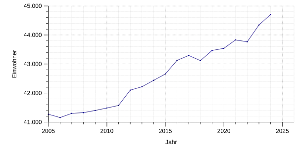 | Einwohner | 44.341 (31. Dez. 2023) (6/13) | ||||||||||||||