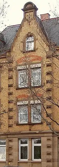 Das nach Plänen des Bauunternehmers Koch & Mayer errichtete Haus befindet sich in einem historischen Heilbronner Arbeiterwohngebiet, das durch den „reduzierten Historismus“ gekennzeichnet ist,[2] wobei sich das Haus mit seiner „kontrastreichen Fassaden- und Detailgestaltung“ an den Historismus in seiner Variante der „deutschen Renaissance“ orientiert.[3]