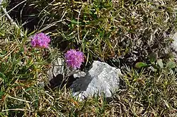 Flora: Die aktuelle Pflanzenwelt Südtirols ist das Ergebnis einer Abfolge von Aussterbens- und Wiederbesiedlungsphasen nach der Würm-Kaltzeit, die zu einer kompletten Vergletscherung des Alpenraums geführt hatte.[24] Aufgrund der Vielfalt seiner geomorphologischen und klimatischen Gegebenheiten beherbergt Südtirol eine verhältnismäßig artenreiche Flora. Es bestehen Lebensräume sowohl für xerophile als auch hygrophile Gewächse, wärmeliebende Pflanzen kommen ebenso vor wie an hochalpine oder gar nivale Bedingungen angepasste. In Südtirol sind etwa 2500 rezente Arten an Farn- und Blütenpflanzen nachgewiesen; somit beherbergt das Land – auf gerade mal 0,07 % der Gesamtfläche des Kontinents – fast ein Fünftel der bekannten Flora Europas.[25] Die größte Artenvielfalt findet sich im Etschtal zwischen Meran und der Salurner Klause sowie im unteren Eisacktal; bei der Alpenflora nimmt das Schlern-Rosengarten-Gebiet eine besondere Stellung ein.[26]
