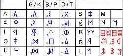 - Javier de Hoz: El origen de la escritura del S.O. In: Actas del III coloquio sobre lenguas y culturas paleohispánicas, 1985, S. 423–464.