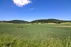 - Riesenberg (etwa 310 m), mit einem Steinbruch; südlich Langenfelds
