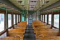 Im Triebkopf folgt beginnend von der Kabine des Lokführers das Maschinenabteil. Danach folgt eine mittelgroße Abtrennung, die ursprünglich als Gepäckraum benützt wurde. Sie hatte fünf klappbare Sitze. Sollte kein Gepäck befördert werden, konnte dieses Abteil auch als Hilfsabteil für die Reisenden verwendet werden. Ab Zügen mit der Ordnungsnummer 306 wurde es entfernt und für die Unterbringung des Luftfilters verwendet. Danach folgt ein Vorraum mit Einstiegstüren, ein Passagierabteil, in welchem eine Toilette untergebracht ist und ein zweiter Vorraum mit Einstiegstüren. In den Beiwagen ist der größte Teil des Raumes vom Passagierabteil eingenommen, welches als Großraum ausgebildet ist und von zwei Vorräumen mit Einstiegstüren begrenzt ist. Das Großraumabteil besteht aus 2- bis 3-Platz-Sitzreihen mit Mittelgang. Die Sitzplätze sind in der sogenannten harten Bauweise ausgeführt. Die Rahmen der Sitzbänke bestehen aus Rohren, die mit stählernen Winkeln verstärkt sind. Belegt waren sie ursprünglich mit Holzleisten aus Buchenholz. In einigen Fällen waren die Belege auch überzogen mit Schaumstoff. In den Passagierabteilen des Triebkopfes sind 72 Sitzplätze, in den Mittelwagen je 128 Sitzplätze vorhanden. Über den Fenstern sind an den Seitenwänden die Gepäckablagerungen befestigt, sie sind aus Aluminiumprofilen hergestellt. Die Beleuchtung des Innenraumes ist an der Decke installiert. Sie ist angeordnet in zwei Reihen über den Sitzen. Bis zu den Fahrzeugen mit den 600er Ordnungsnummern waren die Lampen Leuchtstofflampen. Da diese in der UdSSR nicht geliefert werden konnten, wurden im Rahmen der KR-1 die Lampen entfernt, ihre Öffnungen verschlossen, und an ihrem Platz wurden Glühlampen montiert. Ein Vorraum des Wagens war vom Hersteller als Platz für Raucher vorgesehen. Später wurden die Einrichtungen für den Betrieb entfernt.