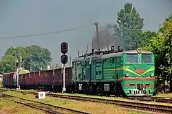 - Filmszene über eine 2ТЭ10Л vor einem Güterzug
