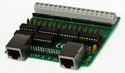 Pro Baustein sind meist 16 (manchmal nur 8) Rückmeldungen möglich. Die Module werden von der Zentrale aus in Serie angeschlossen. Als Verbindung dient ein sechspoliges Kabel. In Summe dürfen 31 Module verbunden sein, eine Grenze, die willkürlich festgesetzt wurde.