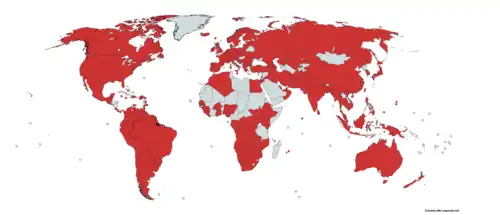 - Im Februar 2021 kamen Argentinien, Bangladesch, Finnland, Frankreich, Indien, Irland, Kanada, Mexiko, Norwegen, Paraguay, Peru, Portugal, Schweden, Schweiz, Spanien, Suriname, Türkei, Venezuela hinzu.