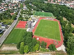 Das Rasengroßfeld hat eine Größe von ca. 105 × 68 m und verfügt über eine Beregnungsanlage und Drainage. Die Leichtathletikanlage Kampfbahn Typ C wurde 2019 komplett saniert und verfügt über folgende Ausstattung: