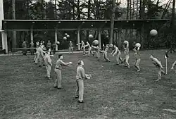 Ab September 1942 wurden Sportanlagen in Avegoor errichtet, darunter eine Sporthalle, die erhalten geblieben ist. Die schweren Erdarbeiten zur Anlage des Sportplatzes und zum Bau der Turnhalle wurde von jüdischen Zwangsarbeitern aus Amsterdam, Rotterdam und Den Haag ausgeführt. Am 2. und 3. September 1942 trafen 139 jüdischen Männer in Avegoor ein. Sie waren in einem Arbeitslager interniert, das sich in der Villa Irene am Zutphensestraatweg in Ellecom befand. Die Zwangsarbeiter waren unter erbärmlichen Lebensbedingungen im Dachgeschoss der Villa untergebracht, die – zusammen mit dem umliegenden Gelände – als „Judenlager Palästina“ bezeichnet wurde. Die Arbeiten dauerten mehr als elf Wochen. Drei jüdische Männer starben in dieser Zeit an den Folgen der extremen Arbeitsbedingungen, des Nahrungsmangels und der Misshandlungen, viele weitere wurden später in deutschen Vernichtungslagern in Osteuropa umgebracht. Verantwortlich für den Bau der Turnhalle war SS-Hauptscharführer Karl Hautz, Leiter der Zentralbauleitung im Stab des Höheren SS- und Polizeiführers in den besetzten Niederlanden, SS-Gruppenführer Hanns Albin Rauter.