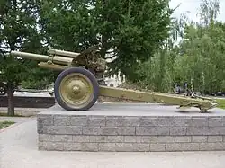 - ↑ Главное артиллерийское управление Вооружённых сил Союза СССР: 122-мм гаубица обр. 1938 г. Руководство службы. Военное издательство Министерства Вооружённых сил Союза СССР, Москва, 1948, стр. 141 и 177 (russisch und in kyrillischer Schrift; deutsch in etwa: Hauptartillerieverwaltung der Streitkräfte der UdSSR: Die 122-mm-Haubitze M1938. Bedienungsanleitung. Militärverlag des Ministeriums für Streitkräfte der UdSSR, Moskau, 1948, S. 141 und 177.)