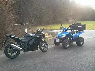 - SF10 (Eigenentwicklung mit Kwang Yang Motor Co.), 50ccm Zweitakt liegend, Katalysator