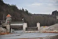Staumauer, Ganz rechts das Restwasserkraftwerk