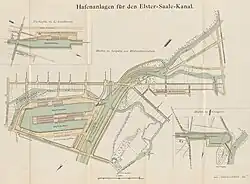 - ↑ Andreas Tappert: Saale-Elster-Kanal erlebt Comeback – Alte Papiere von 1934 befeuern neue Pläne. ( vom 20. April 2022 im Internet Archive). In: Leipziger Volkszeitung, 11. Mai 2016, aufgerufen am 1. September 2024.