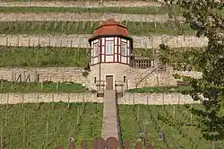 Der Herzogliche Weinberg am südöstlichen Stadtrand von Freyburg wurde Ende des 18. Jahrhunderts angelegt. Seine Geschichte lässt sich bis zum kursächsischen Steuereinnehmer Gottlieb Barthel zurückverfolgen, der den Berg 1774 ausbauen ließ. Dabei entstand auch das bis heute erhaltene Weinberghaus mit seiner Rokoko-Innenausstattung. Der barocke Weingarten ist ein charakteristisches Beispiel für kleinteilig terrassierte Rebanlagen. Sein Aussehen hat sich seit dem 18. Jahrhundert kaum verändert.[17]