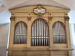 Die jetzige Orgel wurde 1866 von Johann Nepomuk Carl Mauracher errichtet.[2] Das zuvor vorhandene Positiv wurde von Mauracher ausgebaut und der Kirche in Astätt übergeben; am 15. Jänner 1868 erhielt er dafür 140 Gulden. Die Orgel wurde 1972 durch Hermann Oettl (Salzburg) umgebaut, dabei wurde die originale Balganlage durch einen Laden-Schwimmerbalg aus Pressspan ersetzt, das Pedal mittels neuer Lade und Klaviatur im Umfang erweitert. Das Instrument verfügt über sieben Register auf einem Manual (Principal 8', Hohlflöte 8', Gamba 8', Octav 4', Flöte 4', Mixtur 2') und Pedal (Subbaß 16').