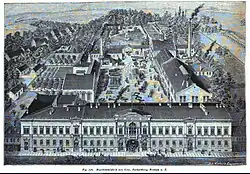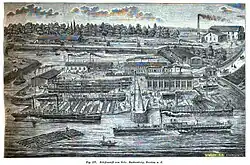 1866 erweiterten die Brüder Sachsenberg ihr Unternehmen durch die Gründung einer Schiffswerft an der Elbe (heute Roßlauer Schiffswerft), in der zunächst Schiffsreparaturen ausgeführt wurden. 1869 verließ der erste selbstgebaute Raddampfer Hermann die Werft, die sich in der Folgezeit durch den Bau der damals noch recht neuen Stahlschiffe (statt der bis dahin gebräuchlichen Holzschiffe) einen Namen machen konnte. Hinzu kamen Spezialschiffe wie der Bau von Schwimmbaggern (ab 1876), Tankschiffen, Fischereifahrzeugen und Seeschiffen. Als eines der bedeutendsten Unternehmen aus Roßlau präsentierten sich die Sachsenberg-Werke 1893 auf der Weltausstellung in Chicago.[1]