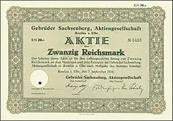 - Frühe Dokumente und Zeitungsartikel zu Sachsenberg-Werke in den Historischen Pressearchiven der ZBW