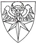 Das älteste Siegel Sachsenbergs stammt aus der Zeit der ersten Erwähnung als Stadt, vor 1250, und zeigt einen Holzzaun oder eine Mauer mit drei Türmen (siehe unten). Bereits das zweite Siegel zeigte das heutige Wappen, das eine Kombination aus dem Waldecker Stern und einem geflügelten Stier darstellt. Letzteres ist das Symbol des heiligen Lukas, dem Schutzpatron der Stadt. Spätere Siegel und Wappen zeigen alle die gleiche Zusammensetzung, wobei der Stier manchmal als Greif fehlinterpretiert wurde und die Blickrichtung mehrmals gewechselt hat.