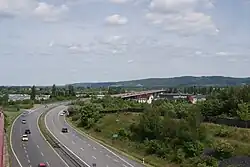 Im Brückenbereich ist die Straße gerade trassiert. Die Brücke wurde von 1997 bis 1999 vom Baukonzern DYWIDAG errichtet.