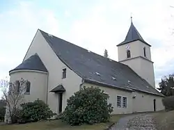 Die Dorfkirche ist mittelalterlichen Ursprungs (mit einer gotischen Holztonne), im frühen 20. Jahrhundert jedoch stark überprägt worden (u. a. Anbau einer neoromanischen Apsis). Bemerkenswert ist der außerordentlich kostbare Flügelaltar eines in Mitteldeutschland tätigen, jedoch namentlich nicht bekannten süddeutschen Meisters; er entstand um 1490. Im Bereich der Apsis wurden im frühen 20. Jahrhundert sieben mittelslawische Keramikbruchstücke gefunden.[14]