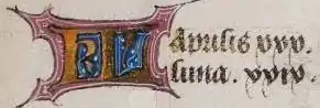 - ↑ Bildinitialen enthalten im Gegensatz zu reinen Buchstabeninitialen kleine Miniaturen.