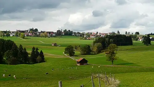 Das Pfarrdorf Sachsenried liegt circa drei Kilometer westlich Schwabsoien an einem Moränenzug.