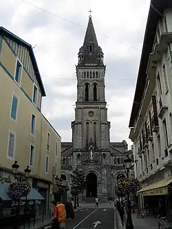 14 teils farbige Säulen, mehrere Seitenkapellen, die Rosetten des Querhauses und der hohe Chor verleihen der Kirche ein stattliches Aussehen. Aus der Vorgängerkirche stammt das Taufbecken, in dem Bernadette Soubirous getauft wurde. Deshalb ist die Kirche Station des Entdeckungsrundgangs „Weg von Bernadette“.[1] In der Krypta befindet sich das Grabmal von Pfarrer Peyramale.