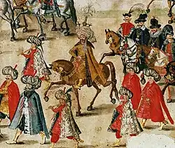 Der persische Botschafter Mechti Kuli Beg betritt Krakau, wo er der Hochzeit des Königs Sigismund III. 1605 beiwohnt.