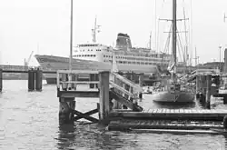 Die Olau Finn zur Grundüberholung bei HDW in Kiel, April 1976