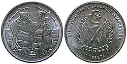 Die Saharaui-Peseta ist seit dem Madrider Abkommen zum politischen Status der Westsahara vom 25. November 1975 die Währung des nur teilweise international anerkannten Staates Demokratische Arabische Republik Sahara.[1] Sie wird offiziell in 100 Céntimos unterteilt, diese Untereinheit existiert jedoch nicht als Zahlungsmittel. Im Umlauf existiert die Währung nur in Form von Münzen von 1 bis 50 Pesetas.