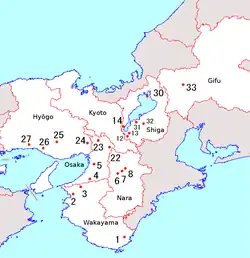 | 14 | Mii-dera (三井寺) | Ōtsu, Shiga | Kannon mit wunscherfüllendem Juwel |